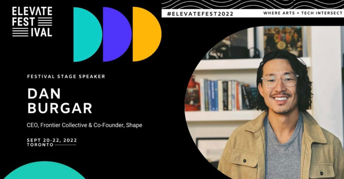 Dan Burgar, Co-founder of Shape, will be speaking at Elevate Festival in Toronto, Ontario from September 20, 2022 to September 23, 2022.